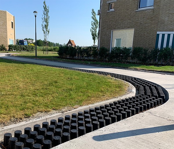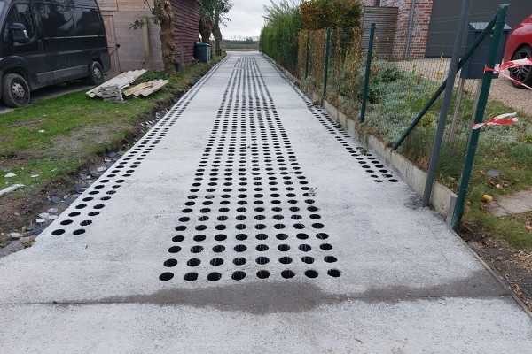 DRAINIX is een ter plaatse gegoten gewapende betonnen grastegel en is de perfecte mix van een klassieke kunststof en betonnen grastegel. Voor de aanleg van nieuwe of heraanleg van bestaande verhardingen (met een oppervlakte groter dan 40m²) zijn strikte regels opgelegd. Om aan deze eisen te voldoen is het aanleggen van een waterdoorlatende verharding met infiltratie in de ondergrond een goede en efficiënte oplossing. Belangrijk voor een waterdoorlatende verharding is dat het water doorheen de volledige structuur kan infiltreren en dat dus niet enkel de verharding zelf doorlatend dient te zijn, maar ook de fundering en onderfundering. Tevens is het gewenst dat de verharding goed berijdbaar is.