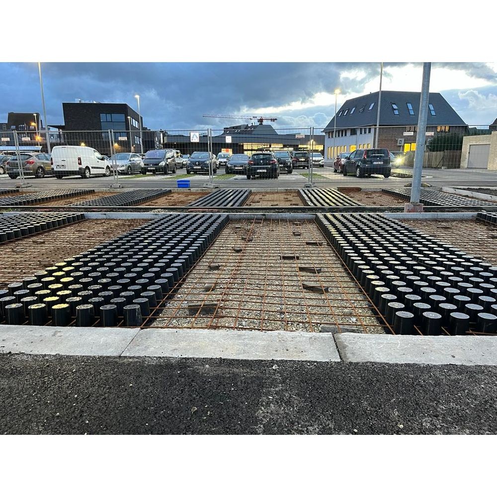 Bij het installeren van waterdoorlatende verharding met Drainix wordt eerst gezorgd voor een stevige ondergrond. Vervolgens wordt de bewapening geplaatst, waarin de Drainix wordt ingebed. Daarna wordt de betonnen toplaag gegoten, waardoor een duurzame en waterdoorlatende verharding ontstaat.
